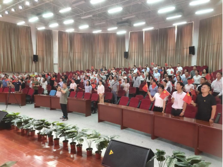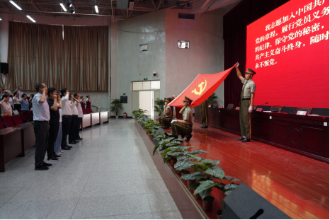 接着,全体党员在鲜红的党旗下共同重温入党誓词。