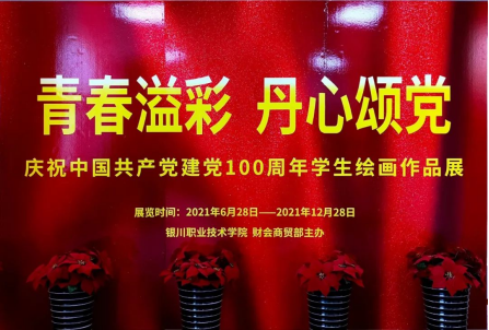 为庆祝中国共产党建党100周年,深入学习贯彻习近平总书记在党史学习教育动员大会上的重要讲话精神,扎实有效做好青少年党史学习教育工作,由银川职业技术学院财会商贸部主办的“青春溢彩丹心颂党”学生绘画作品展在财商部匠馨馆正式开幕。