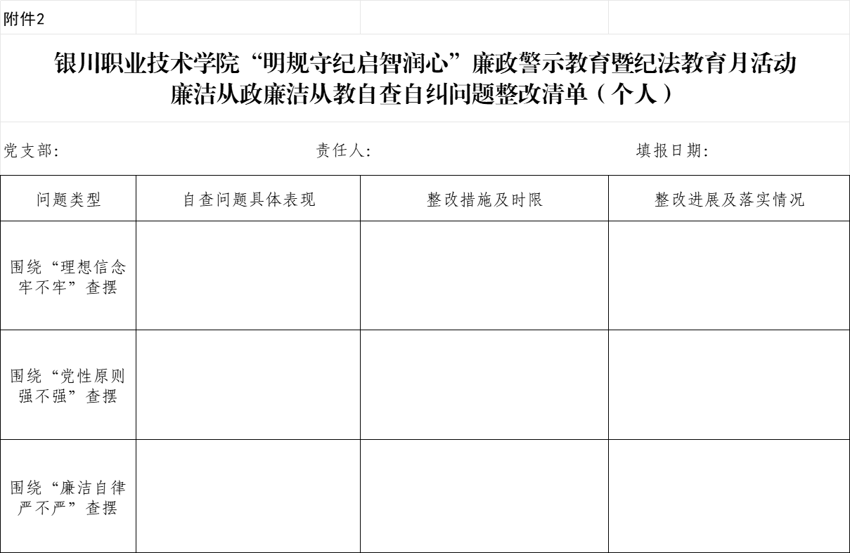 2.“明规守纪启智润心”廉政警示教育暨纪法教育月活动廉洁从政廉洁从教自查自纠问题整改清单(个人)
