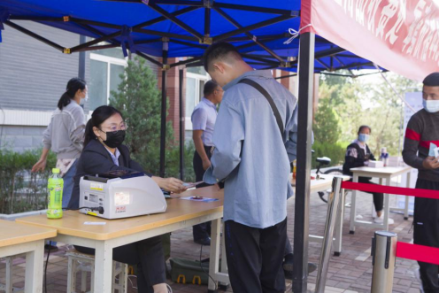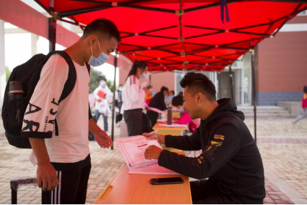 9月14日清晨,学院南门就开始忙碌起来,在工作人员的指引下,前来报到的新生经报到专用通道,完成体温检测、健康码查验、身份核实等流程进入校园。