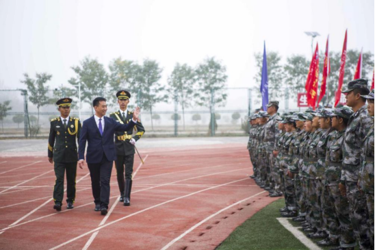 阅兵式开始,学院党委书记、院长黄建明检阅军训新生队伍。同学们整齐的列队、嘹亮的口号,饱满的精神,集中展示了2020年新生的生机与活力。