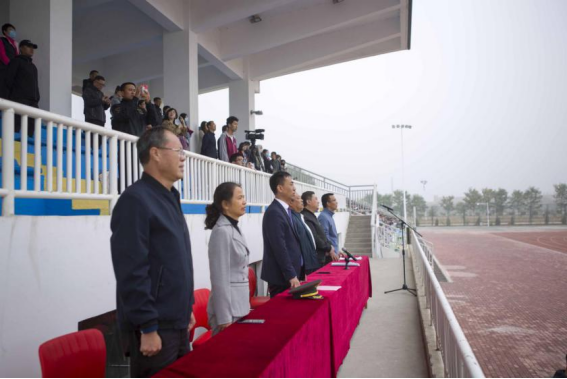 活动开始,第一项,请全体起立,面向国旗,奏唱国歌。