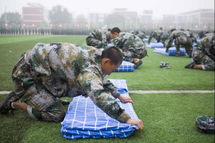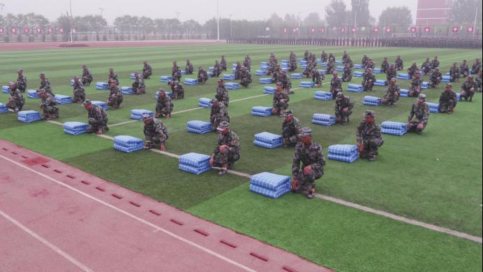2020级参训学生军训成果汇报表演,齐步、正步、跑步、跨立、敬礼、军体拳、匕首操、叠军被,每一个动作都是那么的笃定和自信。短短7天,涓涓细流,汇成江海,莘莘学子,百炼成钢。
