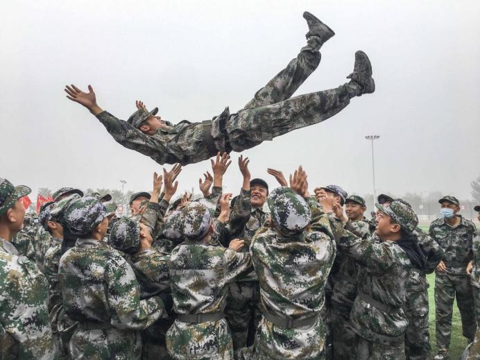 七天虽然短暂,但这七天是教官和学生们同甘共苦的七天。哪怕被教官罚过训过,却仍然建立了深厚的感情。汇报表演结束后,同学们和教官们合影留念。