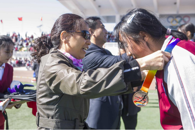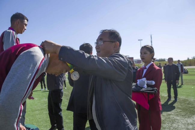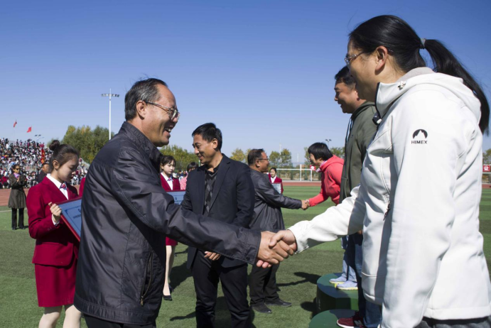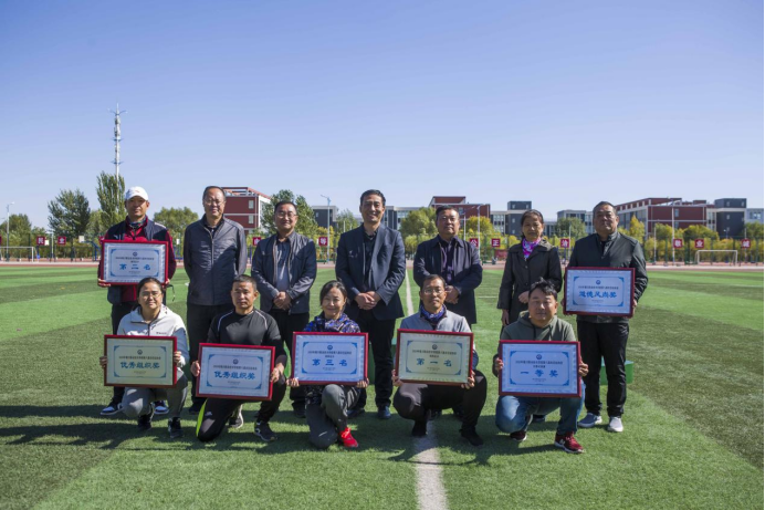10月16日中午十二点,银川职业技术学院第八届田径运动会全部比赛项目结束。学生处副主任韩永生宣读本届运动会团体及个人获得的各类奖项。本届运动会设置个人比赛奖励前六名,其中前三名同学登台领奖,团体比赛设置开幕式表演一、二、三等奖,比赛总成绩一、二、三等奖以及最佳组织奖和道德风尚奖。学院领导为获奖团体、个人颁发奖品。
