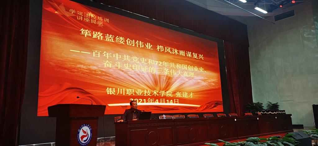 4月14日下午,团校培训班第三期主题团课如约而至,学院党委委员、副院长张建才为学院入团积极分子、团学干部等500余名学生带来党史讲座《筚路蓝缕创伟业,栉风沐雨谋复兴——百年中共党史和72年共和国创业史、奋斗史印证的三条伟大真理》。