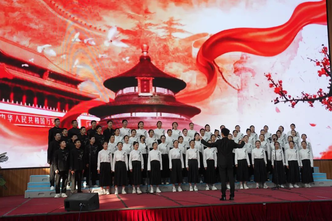 来自六个专业部的师生合唱团,用真挚的情感和嘹亮的歌声,歌颂了祖国75年的奋斗历程和辉煌成就。《我爱你,中国》《我和我的祖国》《光荣与梦想》《向往》《祖国不会忘记》《爱的奉献》等一首首经典曲目轮番登场,唱响师生爱党爱国的炽热情怀,唱出心中对祖国强大的信心、对美好生活的憧憬,展现银职人热爱祖国、团结奋进、朝气蓬勃、锐意进取的精神风貌。