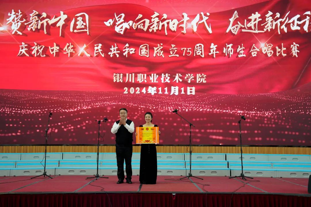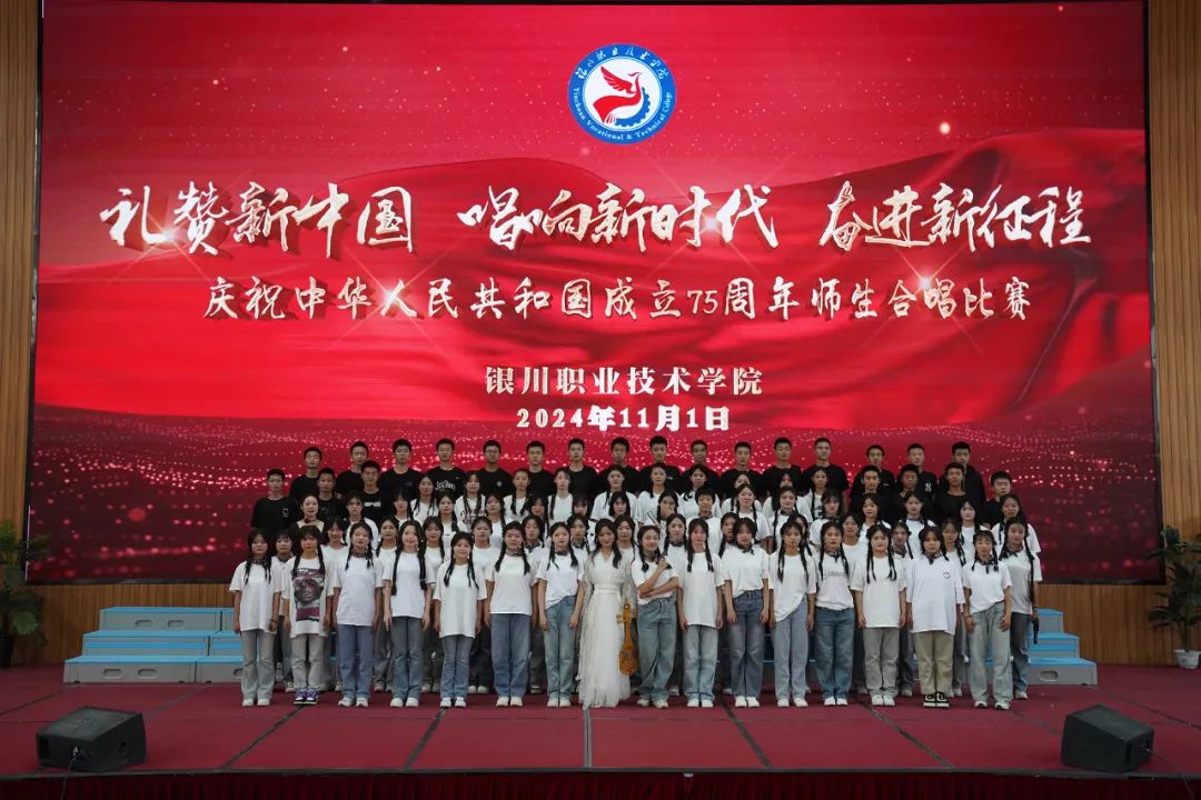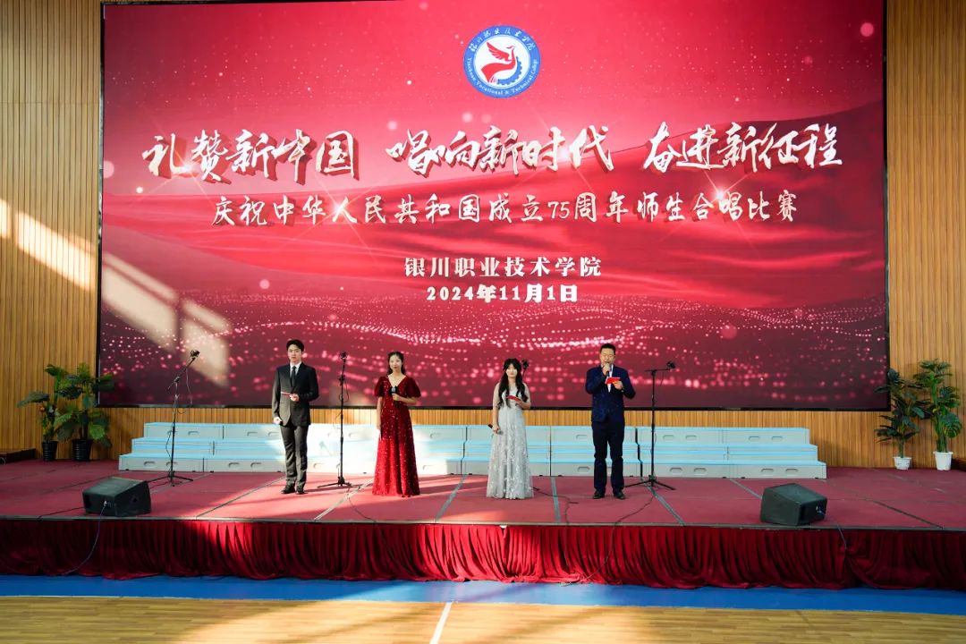 11月1日上午,银川职业技术学院庆祝中华人民共和国成立75周年“礼赞新中国·唱响新时代·奋进新征程”师生合唱比赛在学院体育馆举行。