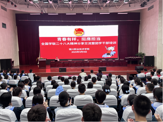 为深入学习贯彻全国学联二十八大精神,提升团学干部综合素质与履职能力,9月9日下午,银川职业技术学院开展以“青春有样,挺膺担当”为主题的全国学联二十八大精神分享交流暨团学干部培训。此次培训由学院团委副书记李文雪主讲,学院各级团干部、学生会干部共计300余人参加。