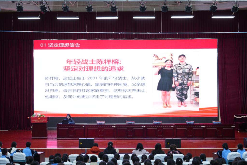 付小兰老师以通俗易懂的方式,结合思政课内容,从陈祥榕烈士用生命践行“清澈的爱,只为中国”的坚定信念,讲到黄文秀书记“青春不以山海为远,志愿只想国家未来”的责任担当;从仲麟扎根沙漠植“绿海”的吃苦耐劳,讲到龙伟杰在世界赛场精准至千分之二的拼搏奋斗,通过一个个鲜活的事例,生动诠释了新时代好青年的标准与内涵。她告诉大家理想信念是精神支柱,担当精神是鲜明特质,吃苦耐劳是必经之路,拼搏奋斗是亮丽底色。这既是历史传承,更是时代召唤。