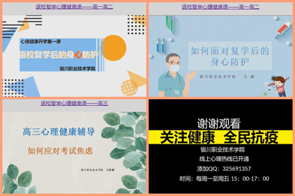 我院教务处为帮助学生完成心理过渡,复课后加强了心理辅导,面向全体学生的《复学心理健康课》及针对于2017级升学班的《复学心理健康课》围绕疫情期间的心理状态对学生进行心理辅导,缓解学生焦虑情绪,及时调整心态,迅速找回学习状态,为接下来的考试做好充分的心理准备。为激励学生调整心态、主动学习,持续畅通线上学生心理咨询服务。并要求教师在教学工作中放缓步子,调整节奏,耐心引导学生重新进入学习状态,为学生的顺利过渡保驾护航。