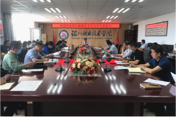 为认真贯彻落实习近平总书记重要指示精神和银川市扫黑除恶专项斗争及校园扫黄打非工作部署要求,深入推进学院扫黑除恶专项斗争向纵深发展,努力从根本上遏制黑恶势力在校园滋生蔓延,确保校园安全稳定。2020年5月19日下午,银川职业技术学院召开2020年校园安全暨扫黑除恶专项斗争专题会议。学院党委书记、院长黄建明同志主持会议,党委班子成员、院长助理、全体中层干部及宁夏轨道交通学校、银川百年职校、民生物业公司负责人参加了会议。