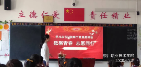 根据银川市团委《关于全市深入学习贯彻习近平总书记视察宁夏重要讲话精神的通知》要求,按照学院党委的统一安排部署,银川职业技术学院团委高度重视,组织全体共青团员扎实开展学习和贯彻落实,迅速在全院共青团员和广大学生中掀起了学习热潮。