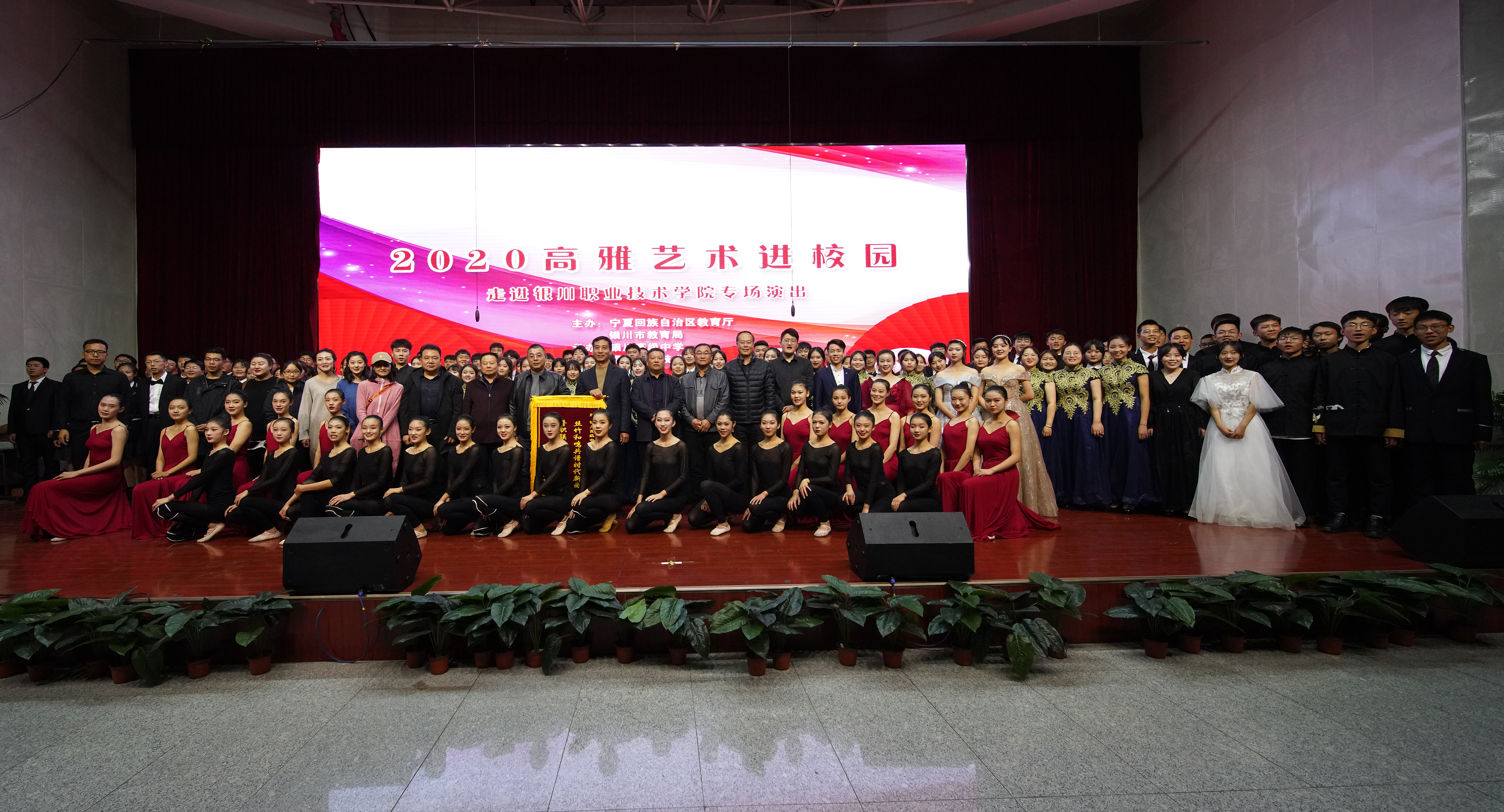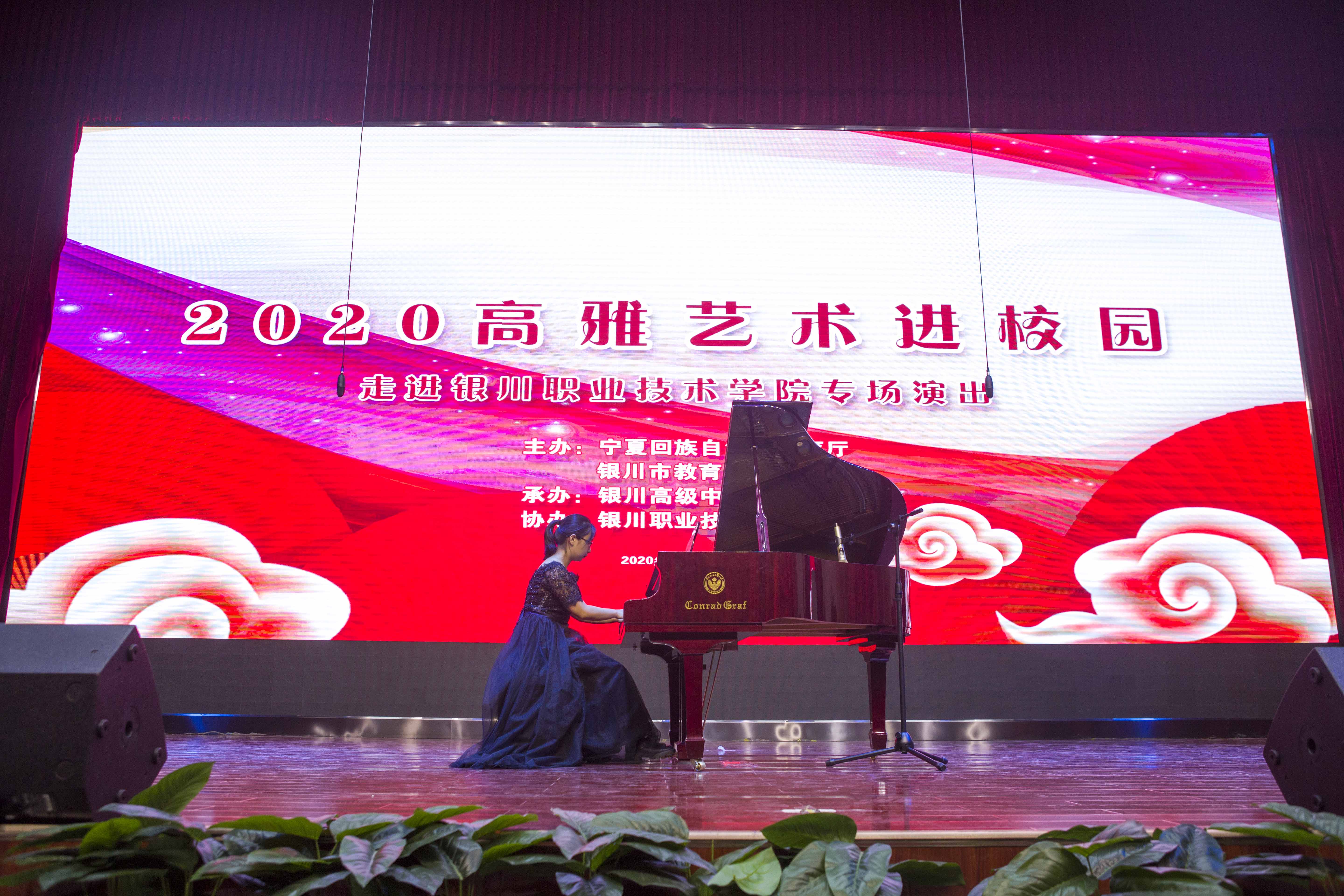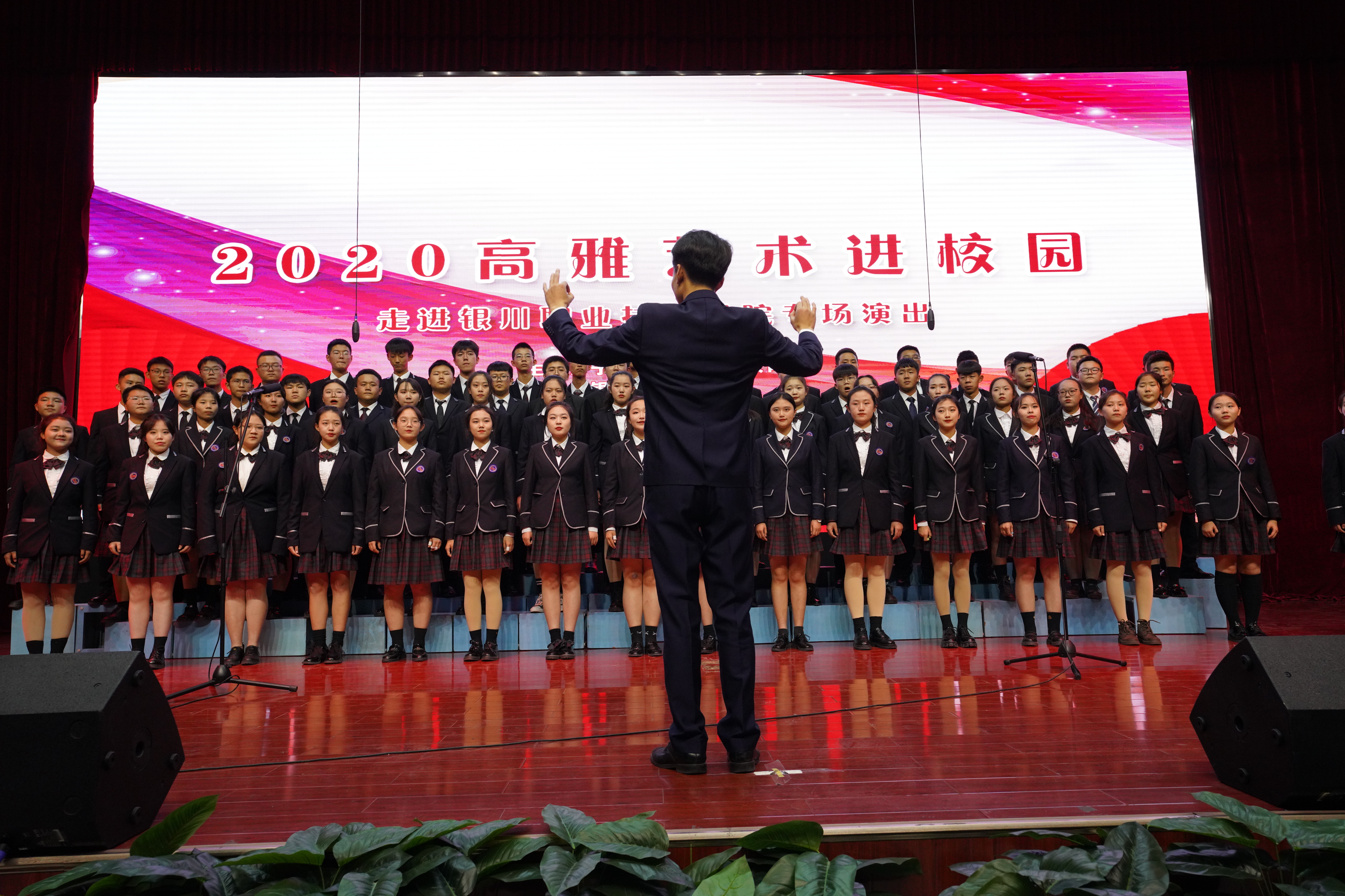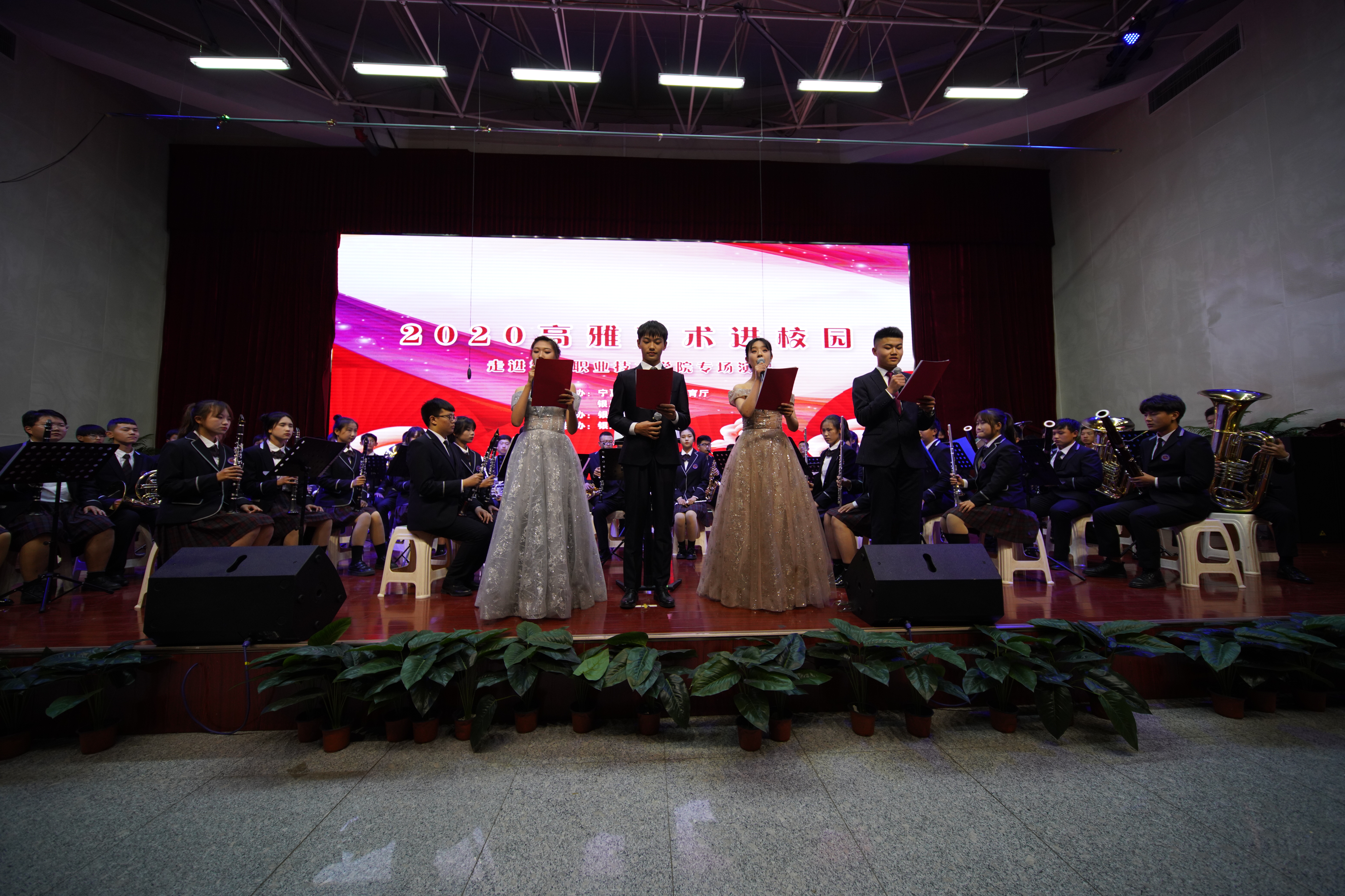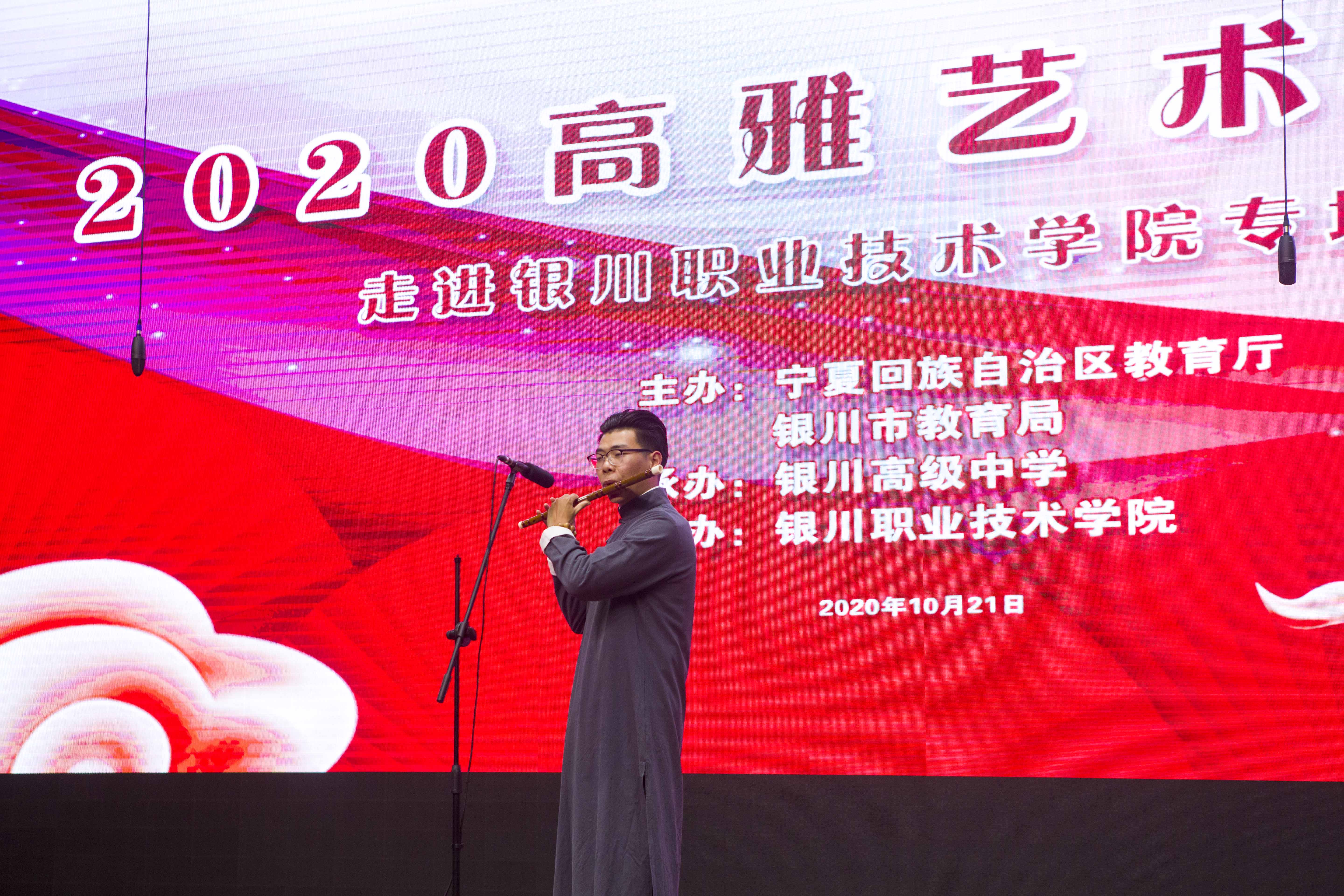 10月21日下午,随着铿锵有力的管乐合奏《钢铁洪流进行曲》的精彩演奏,由自治区教育厅、银川市教育局主办,银川高级中学承办,银川职业技术学院协办的2020“高雅艺术进校园”活动在银川职业技术学院拉开序幕。