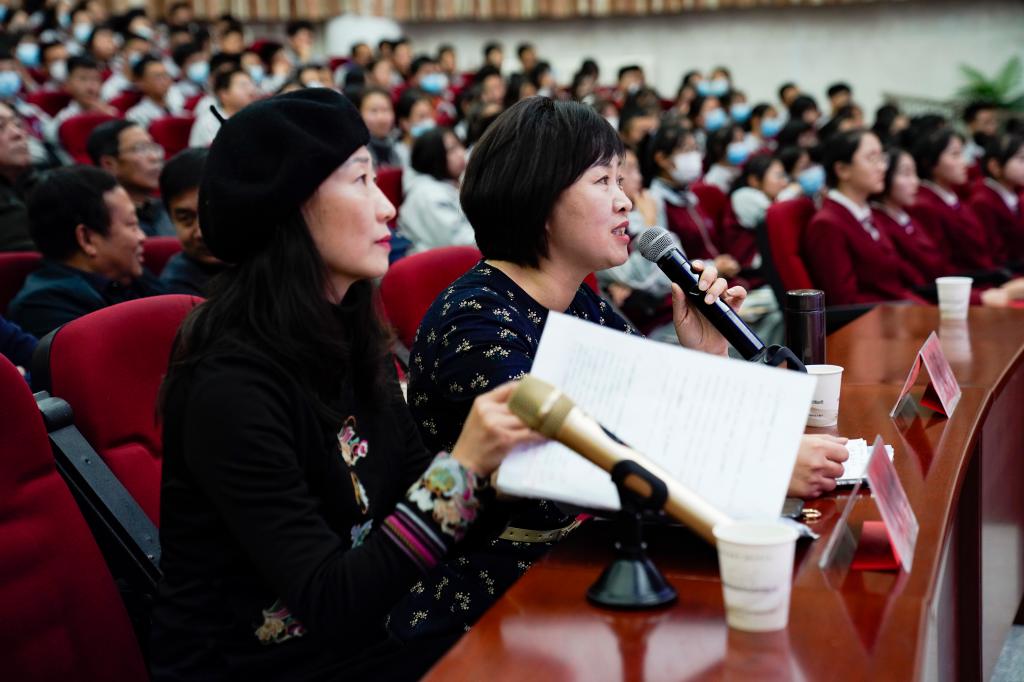 从《诗经》到唐诗宋词,任凭时光流转,时光更迭,中华诗词永远是中国人的独特气韵。在全场气氛意犹未尽之时,黄院长慷慨激昂的为在场师生即兴朗诵了《沁园春·雪》,院长的朗诵抑扬顿挫、声情并茂,那浑厚有力、充满激情的朗诵为本场比赛画上了圆满的句号!