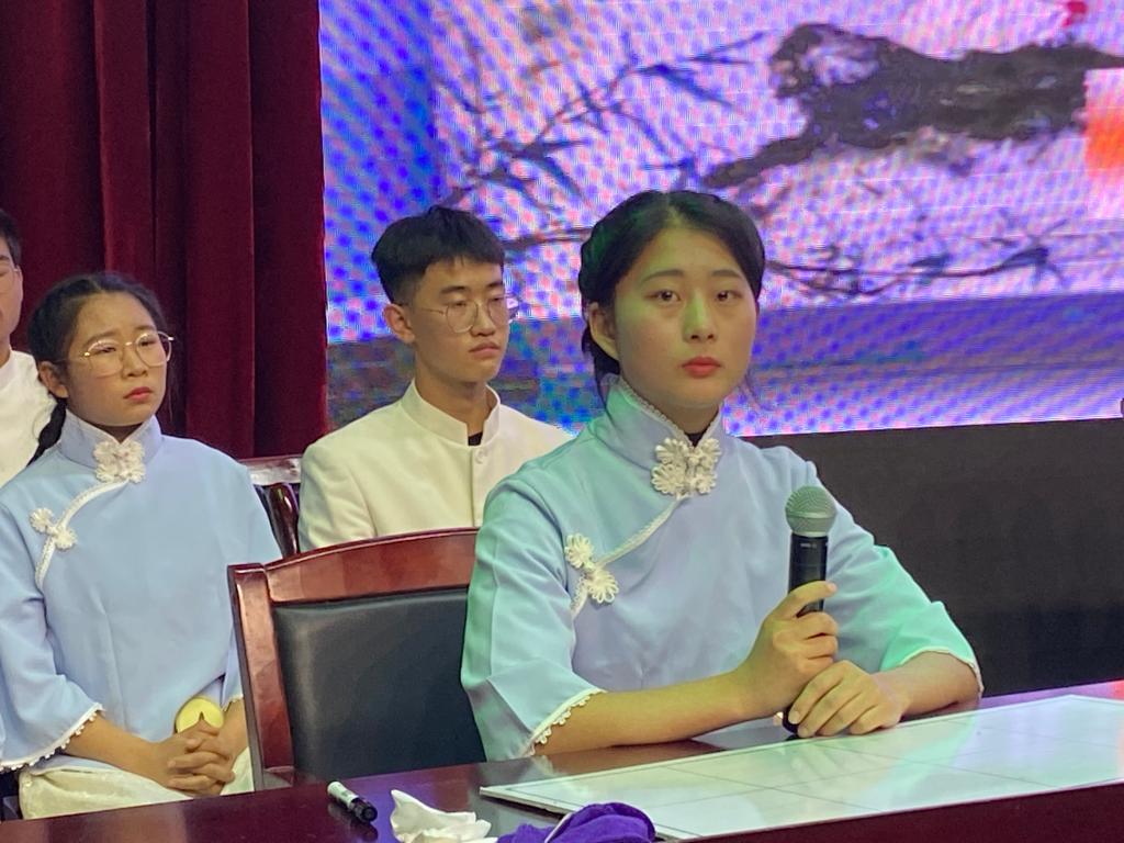 飞花一出,谁与争锋?比赛进入最有看点的个人争霸环节—飞花令。财会商贸部赵怀君同学与计算机工程部朱红娟同学的对擂格外精彩,一句句好诗从唇齿之间你来我往,好似泰山崩于前而面不改色,特别是朱红娟同学毫不怯场,尽显女儿豪情万丈之势。最终赵怀君同学斩获个人攻擂赛的擂主。