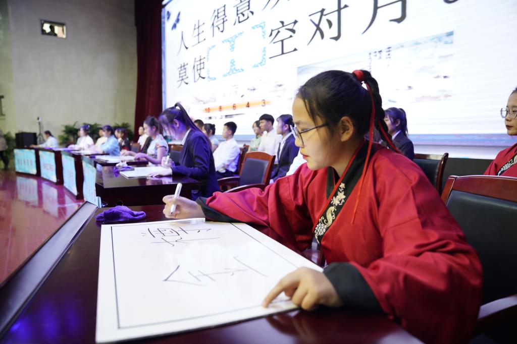 首先,进行的是团体争夺赛,各队选手在比赛环节中沉着冷静,认真书写,一笔一划,尽显大家风范。他们时而聚精会神苦思冥想,时而浅笑安然胸有成竹,台下的同学也跃跃欲试,场上场下气氛紧张而热烈。评委现场点评更是引经据典,妙语连珠,精彩纷呈。胡老师的一个个小故事,让学生更加亲近了中华诗词;孙姗姗老师带领全场齐声诵读《静夜思》,将诗词之美尽情展现。最终,餐旅服务部6名选手过五关斩六将,拔得头筹,获得本场比赛的冠军,计算机工程部、财会商贸部获得团体二等奖,护理部、电子工程部、汽车工程部获得团体三等奖。
