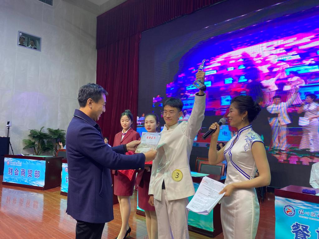 比赛结束后,学院领导分别为获奖团体和个人及指导教师颁发了奖杯和荣誉证书。黄建明院长将个人专著书籍题字留念亲授飞花令擂主获得者赵怀君同学,赵怀君也成为了我院第一位获此殊荣的学生,院长的亲授更多的是对学生成长的关注、呵护、激励与期盼。正所谓少年不负凌云志,仗剑吟诗再出发。