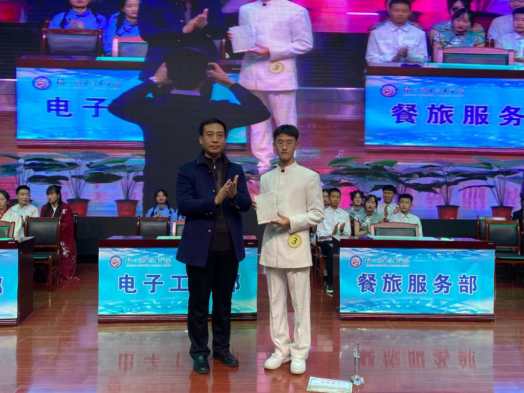 学院党委书记、院长黄建明带领学院党委班子成员亲临比赛现场,与各处室、专业部主任及400余名学生一同现场观看了比赛。