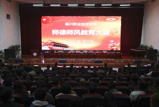 为进一步加强学院师德师风建设,提高全院教职工的职业道德素养,促进教职工以优良的作风和崭新的姿态投入到新学期各项工作。2月26日上午,银川职业技术学院召开了2021年度师德师风教育大会。会议由学院党委书记、院长黄建明主持,学院领导班子及全院教职工参加了此次会议。