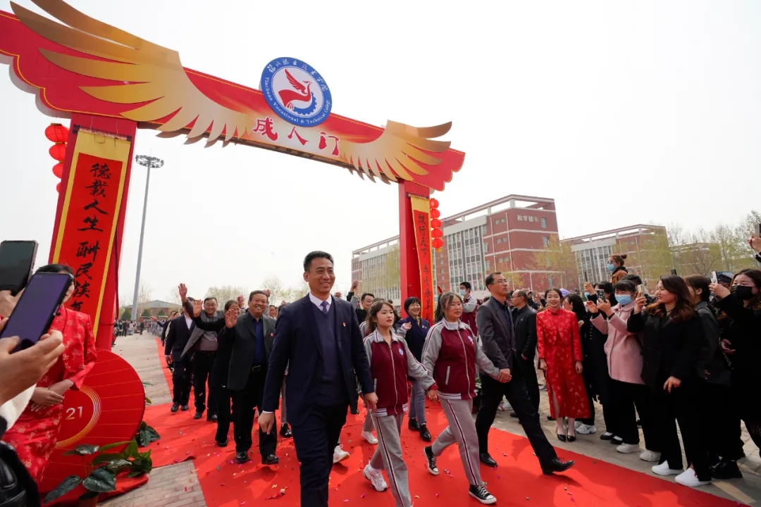 集合!整装出发。同学们意气奋发,斗志昂扬,在学院领导、系部主任和班主任老师的陪伴下进入“成人门”,护送他们走向成功之路。激励着莘莘学子立志成才,这一程,师生风雨同舟;这一程,师生携手并进。