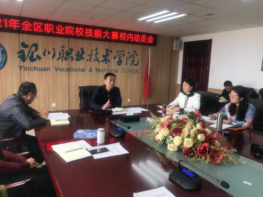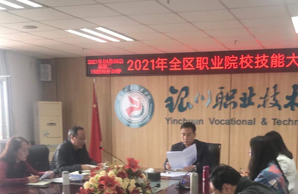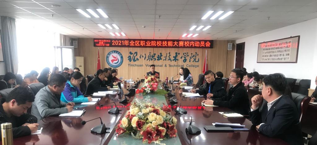 2021年4月6日下午,我院召开了2021年全区职业院校技能大赛校内动员会,学院党委书记、院长黄建明,院长助理张冰出席了本次会议, 教务处主任、各专业部主任、教学主任及各赛项负责人参加了本次会议。