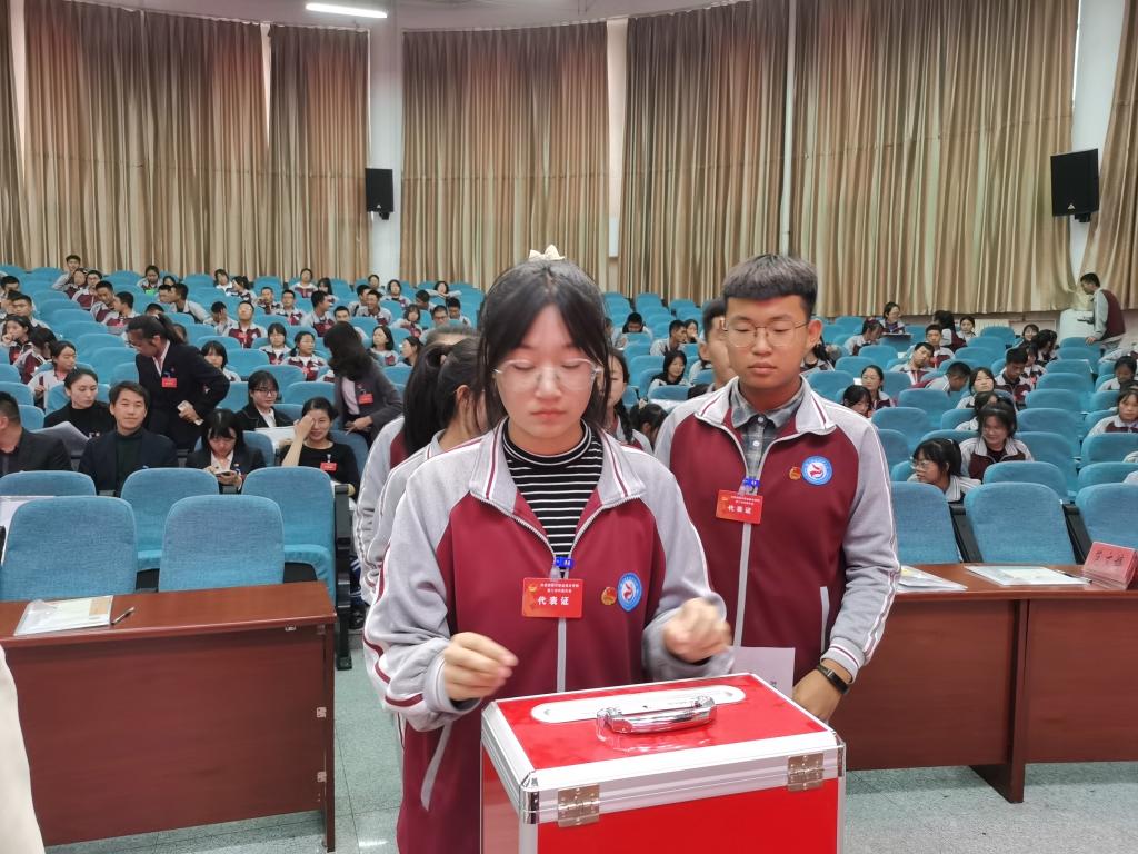 接着,各代表团分别进行分团讨论。分团讨论结束后,召开主席团第二次会议。随后,召开第二次全体代表会议。会议表决通过了《共青团银川职业技术学院第二次代表大会选举办法(草案)》、《共青团银川职业技术学院委员会委员候选人建议名单(草案)》及监计票人和总监票人名单。大会严格按照《中国共产主义青年团基层组织选举规则(暂行)》,在庄严肃穆的氛围里,通过差额选举,选举产生了共青团银川职业技术学院第二届委员会委员。紧接着召开了主席团第三次会议,听取总监票人汇报选举情况并确定当选的第二届委员会委员。16时30分,大会第三次全体会议暨闭幕式顺利召开。总监票人财商部丁媛同志向大会宣读选票统计情况。学院党委委员、副张旭副院长宣布了新当选的第二届委员会委员名单。丁媛、金哲、何楠、张飏、李文雪、范文婷、刘宝仁等7名教师和兰佳齐、张彩霞2名同学当选为学院新一届团委委员,大会在《光荣啊!中国共青团》庄严激昂的合唱声中圆满闭幕!