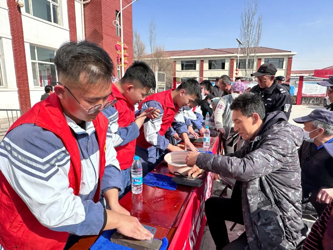 磨刀、磨剪子是村民们最喜爱的项目,只见磨刀石还未摆上,村民们已经排起长队拿出了自家珍藏许久的“锈刀”。我们餐旅服务部的小伙子们也毫不含糊,甩开膀子,摆好抹布,泡好磨刀石,开磨!一个个磨得满头大汗,老爷爷连连称赞。