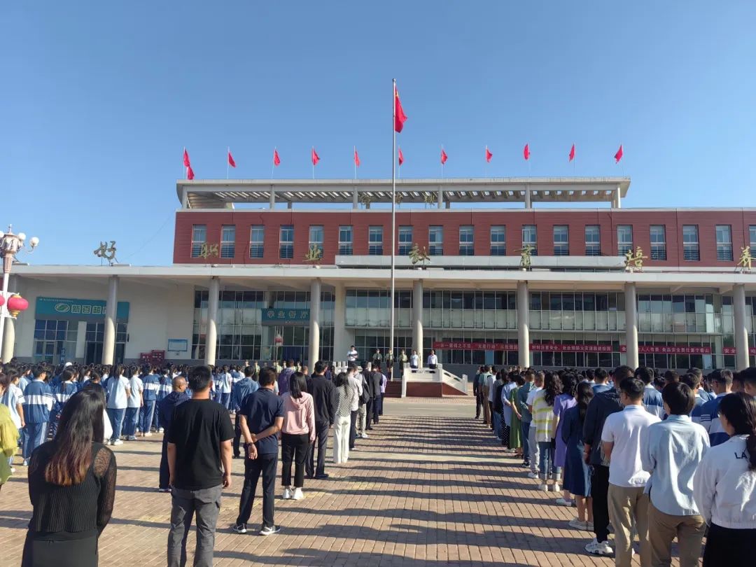 2023年8月28日上午,银川职业技术学院2023-2024学年第一学期第一周“乘风破浪开新局 立志驽行谱华章”主题升旗仪式在俭德广场举行。承担本次升旗任务的是财会商贸部,学院党委委员、副院长翟新荣主持仪式。