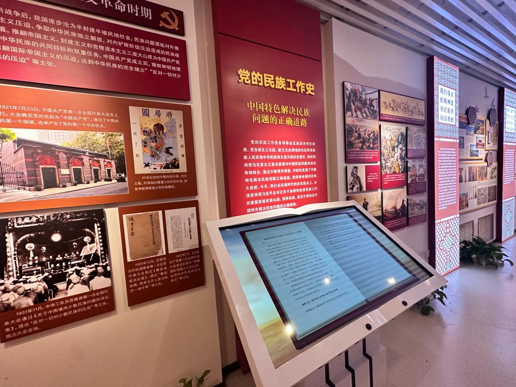 同学们通过自助语音导览系统,从“树立正确的中华民族历史观”、“打造铸牢中华民族共同体意识示范市”、“中国、我们共同的美丽家园”等六个方面进行参观。学员们认真聆听党的革命历史故事、党的民族工作故事并重温入团誓词。