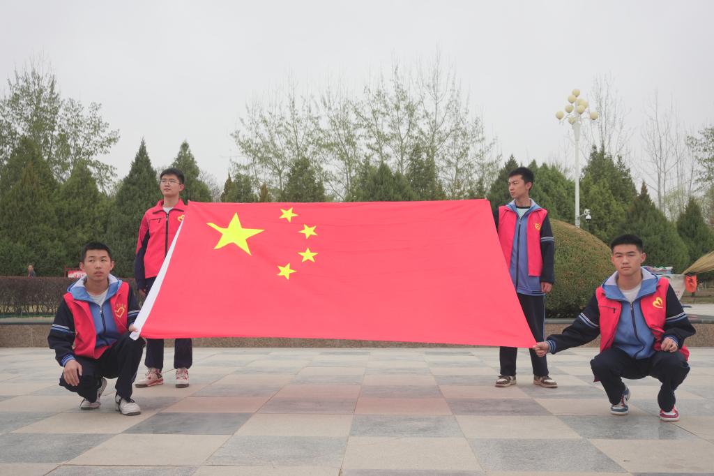 同学们整齐列队,怀着对革命先辈们的崇高敬意和无限哀思,庄重地唱响国歌。