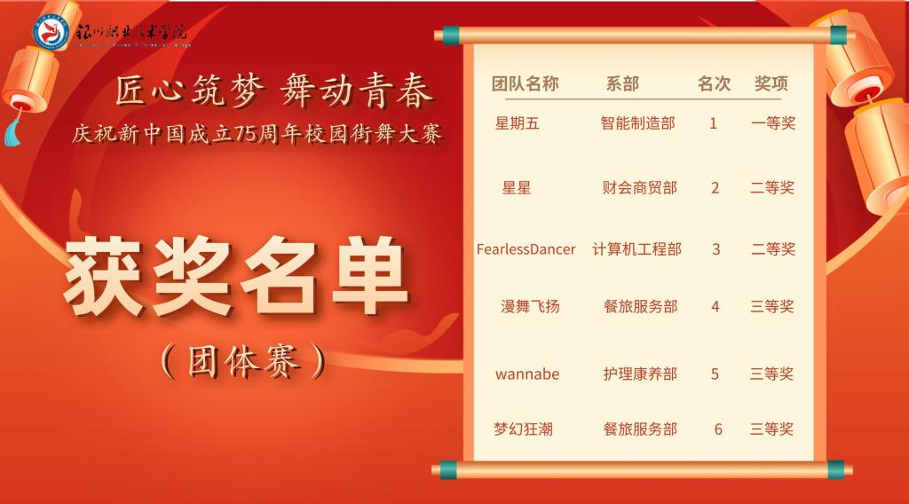 为喜迎新中国成立75周年,歌颂共和国成立75周年来取得的辉煌成就,进一步激发全体师生的国家荣誉感和自信心,弘扬伟大的爱国主义精神。4月24日下午,学院团委组织开展“匠心筑梦·舞动青春”——庆祝新中国成立75周年校园街舞大赛。