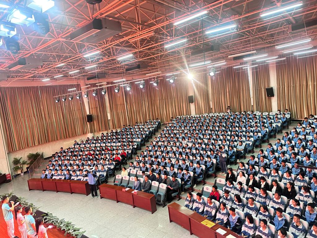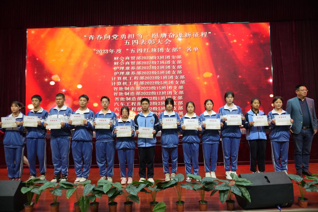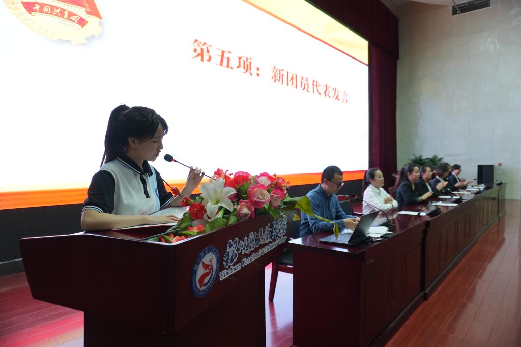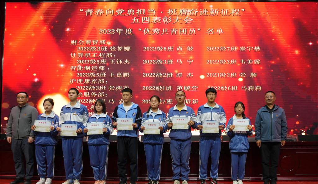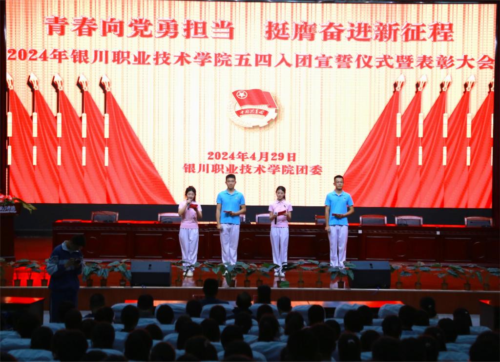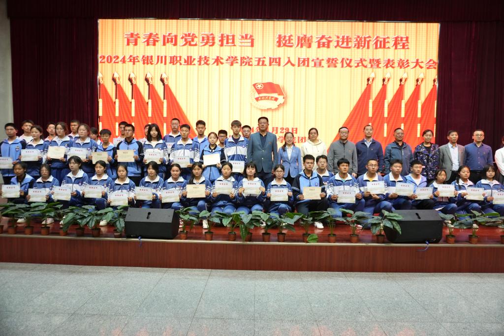 在五四运动105周年来临之际,为继承和发扬五四精神,加强团组织凝聚力,牢固树立团员青年对共青团组织的荣誉感、归属感,银川职业技术学院于2024年4月29日组织开展“青春向党勇担当·挺膺奋进新征程”——2024年五四入团宣誓仪式暨表彰大会。学院党委书记马咏晖,党委副书记、院长喻有朝,党委办公室(纪检监察室)主任傅强,各专业部党支部书记、主任,团总支干部及400名新团员和部分优秀团员代表出席本次大会。