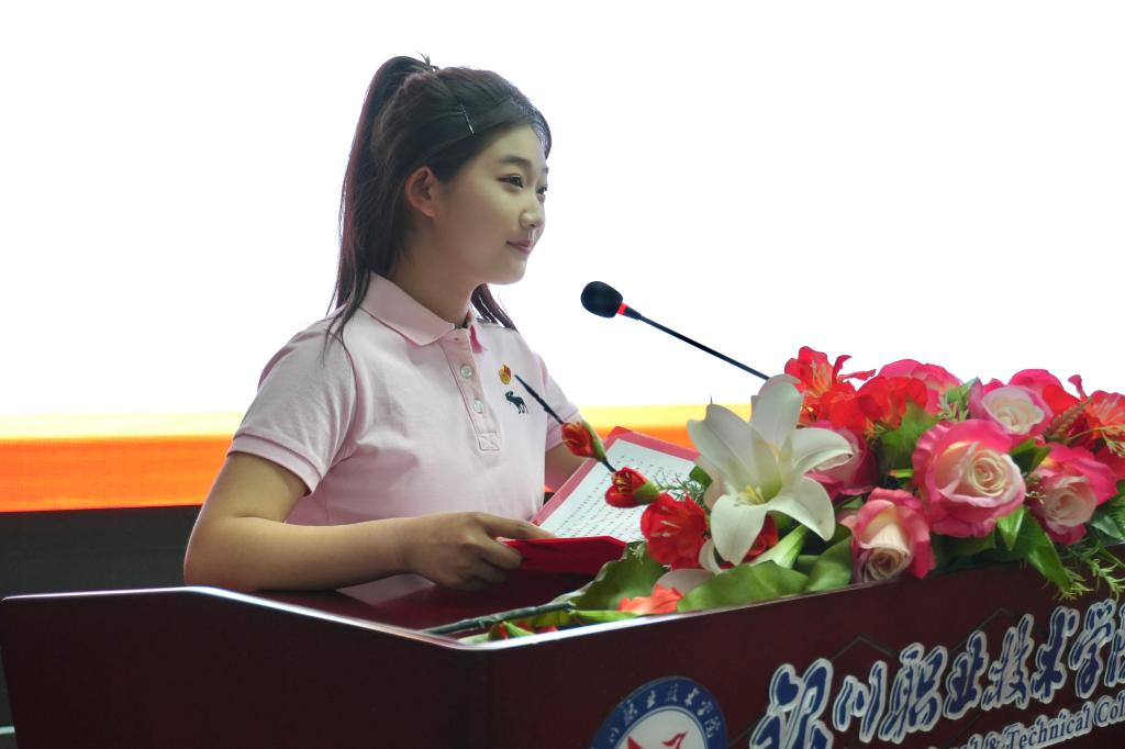 老团员邹玥结合自己参加共青团以来的经历,与大家分享了自己在学习和生活中的收获与感悟,并勉励新团员们在今后的学习、生活中要积极响应习近平总书记号召,继承发扬五四精神,不断开拓进取,勇担时代重托,做走在时代前列的奋进者、开拓者、奉献者。