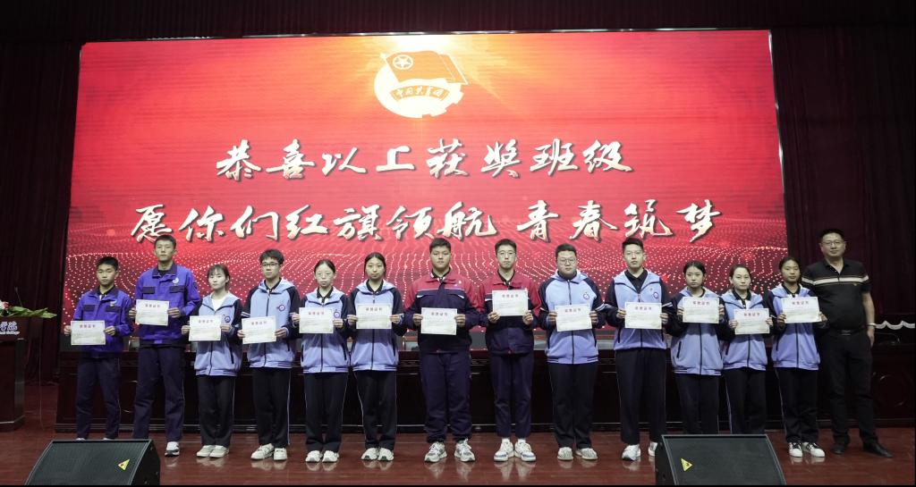 如潮的掌声中,学院党委书记马亚宁带领教师及老团员代表郑重地为新团员佩戴团徽。胸前跃动的团徽,是历史烽火淬炼的青春徽章,亦是时代答卷书写的责任印章——齿轮镌刻五四精魂,麦穗凝结奋斗初心,348枚徽章在校服上连缀成星河,见证银职学子“技能报国”的炽热宣言。