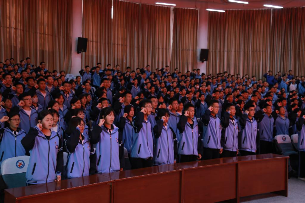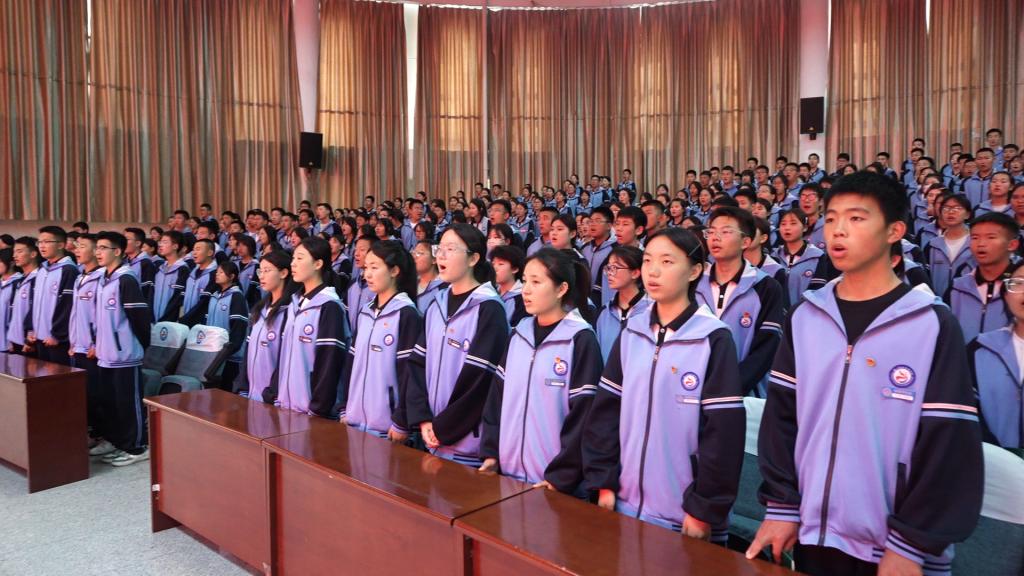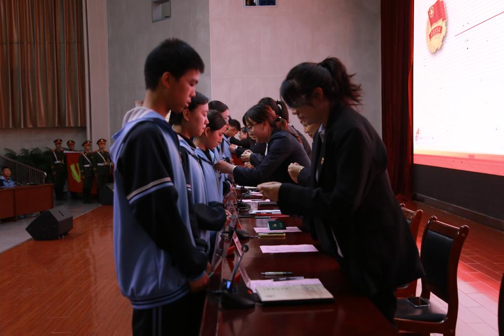 胸前佩戴着熠熠生辉的团徽,全体新老团员在优秀团员代表邓冠辉的领誓下,面向神圣的党旗、团旗,以铿锵有力的声音齐声宣誓:“我志愿加入中国共产主义青年团……为共产主义事业而奋斗!”青春的誓言掷地有声,既饱含对团组织的赤诚向往,更彰显新时代青年听党话、跟党走的坚定信念。现场回荡的铮铮誓词,既是团员们对初心使命的郑重承诺,也化作他们以热血践行青春使命、用担当诠释“请党放心,强国有我”的行动号角。