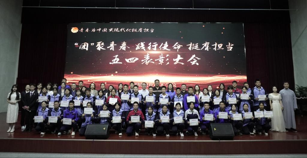 百年征程波澜壮阔,青春奋斗永续华章!为纪念“五四运动”106周年,弘扬“爱国、进步、民主、科学”的五四精神,激励广大青年传承红色基因、勇担时代使命,学院于5月14日14:30在报告厅隆重举行“‘团’聚青春·践行使命·挺膺担当”五四宣誓入团仪式暨表彰大会。学院党委领导班子全体成员、各专业部党支部书记、主任、部分教师代表、全体共青团干部、348名新入团学生、部分团员代表齐聚一堂,共同见证新团员入团宣誓,表彰先进典型,凝聚奋进力量。
