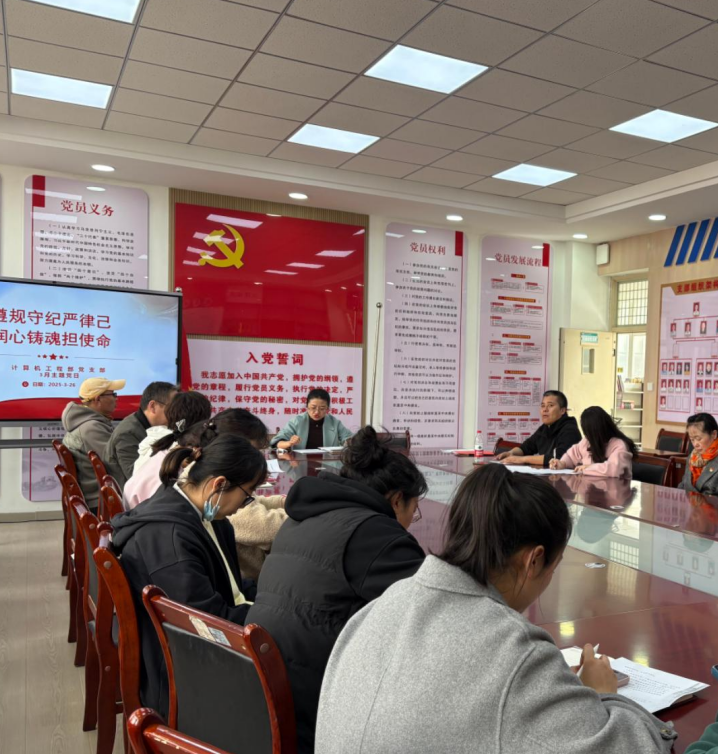 2025 年 3 月 26 日,计算机工程部党支部依据学院《关于开展“遵规守纪严律己 润心铸魂担使命”廉政警示教育暨纪法教育月的通知》要求,围绕“遵规守纪严律己 润心铸魂担使命”主题开展党日活动,旨在强化党员纪律意识,筑牢廉洁防线。现将活动情况总结如下:
