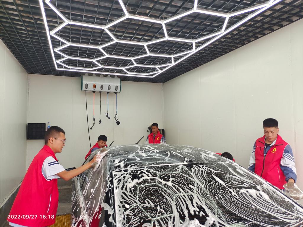 2022年9月27日下午,汽车工程部学生志愿者服务小队,义务为驻校教师进行洗车服务。专注的眼神中体现出了对教师的感谢,疫情阻断不了的师生情!为了不受疫情影响,全体教师驻校正常开展教学,舍小家、为大家。