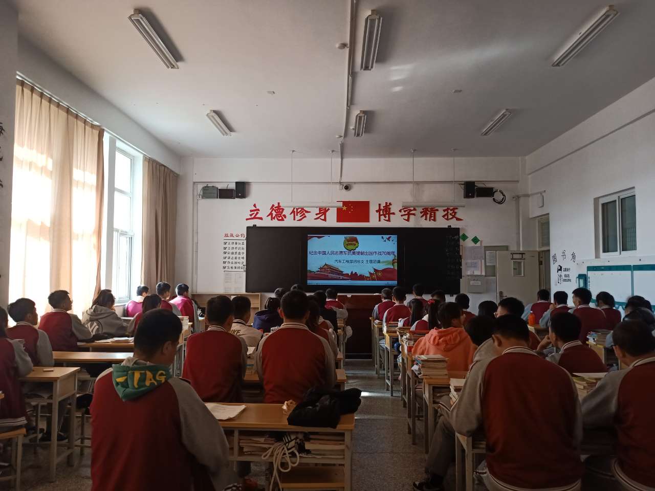 汽车工程部响应市团委、院团委号召,为纪念中国人民志愿军抗美援朝出国作战70周年,开展以“铭记抗美援朝历史 弘扬爱国主义精神”主题团日学习,具体如下:活动一:为了让广大学生牢记那段历史,牢记抗美援朝英雄人物。汽车工程部19个班级开展“抗美援朝英雄人物故事我来讲”活动,缅怀先烈,传承爱国主义精神。活动二:10月25日晚,系部组织各班支部观看共青团中央“致敬抗美援朝”主题云团课。
