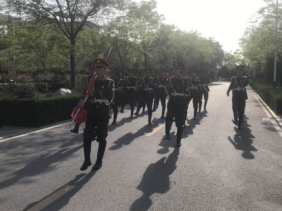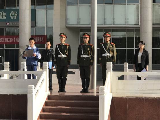 汽车工程部国旗仪仗队的同学迈着铿锵有力的步伐,护卫国旗登上旗台。在学院全体师生高唱的国歌声中,五星红旗冉冉升起。在介绍了主旗手同学和护旗手同学后,全院师生再次唱响了《歌唱祖国》。