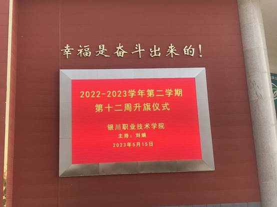 2023年5月15日上午,银川职业技术学院举行2022-2023学年第二学期第十二周升旗仪式。承担本次升旗任务的是汽车工程部,由学院技能鉴定所主任刘娟主持,学院全体师生共同参加了本次升旗仪式。